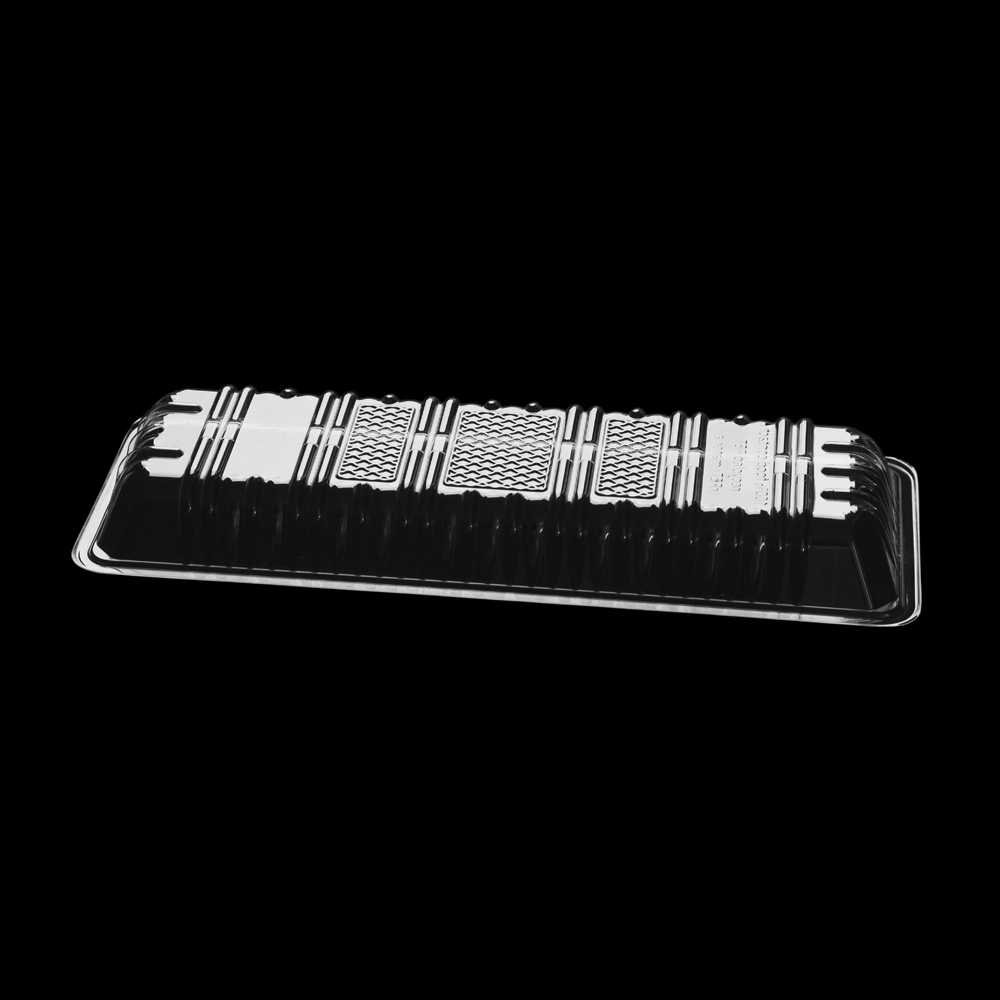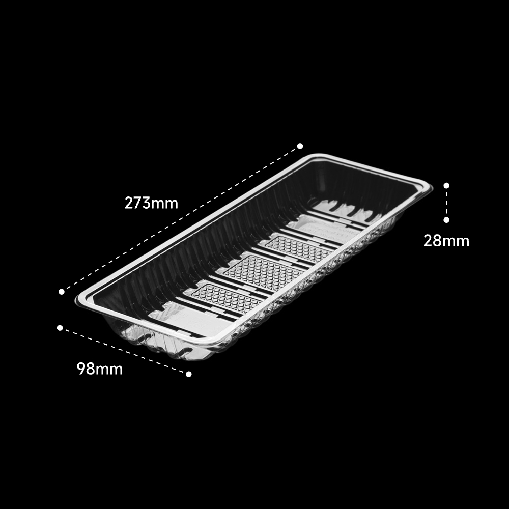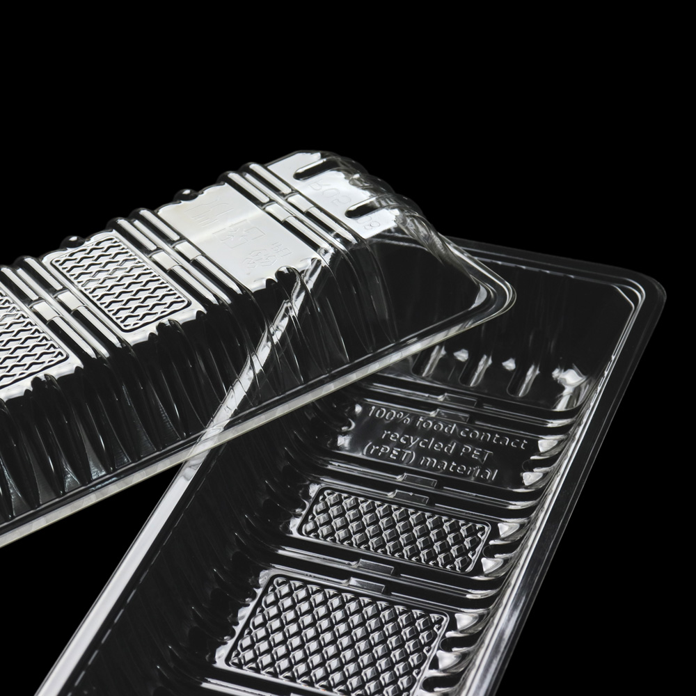 This customizable RPET food tray is a sustainable, durable, and stylish packaging solution for displaying a variety of foods. Available in clear or black, it enhances food presentation while promoting eco-friendly practices.