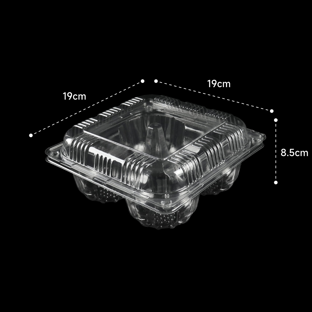 Square 4 Cavities Simple Plastic Clamshell Food Box Blister Fruit Packaging Container Transparent and VisibleFresh Fruits Display Tray