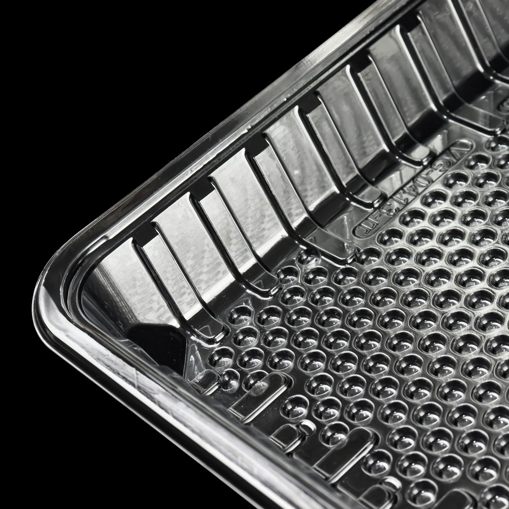 Each tray is made from food-grade PET material, offering excellent clarity, strength, and recyclability.